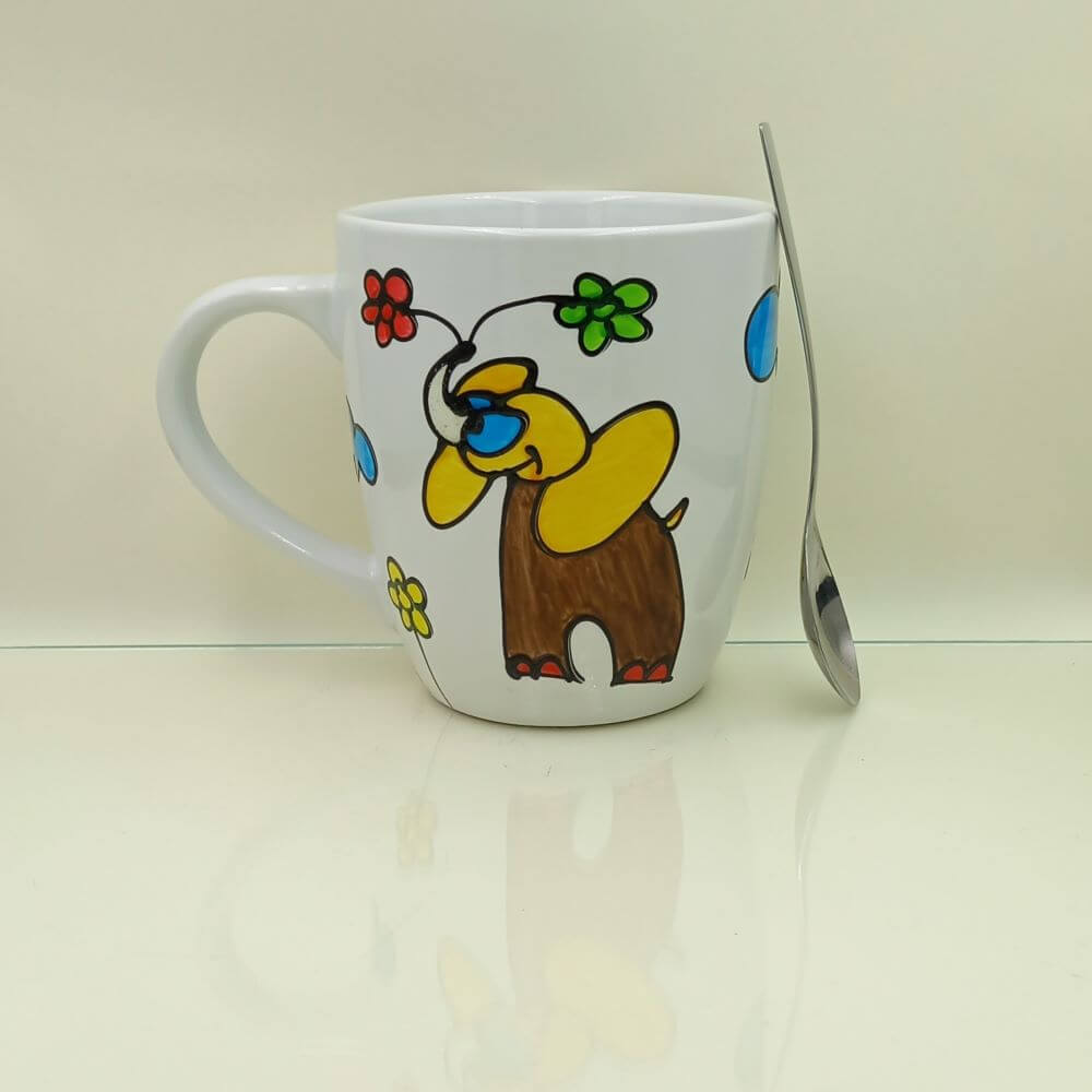 Technika wykonania: Kubek ceramiczny ręcznie malowany farbami do szkła i ceramiki.