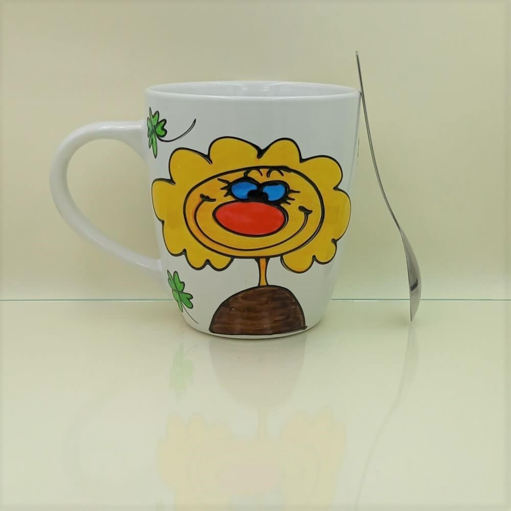 Technika wykonania: Kubek ceramiczny ręcznie malowany farbami do szkła i ceramiki.