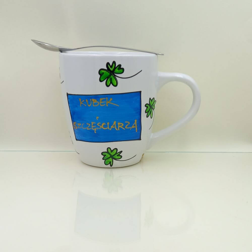 Duży, ręcznie malowany, kubek 700 ml „Kubek Szczęściarza”