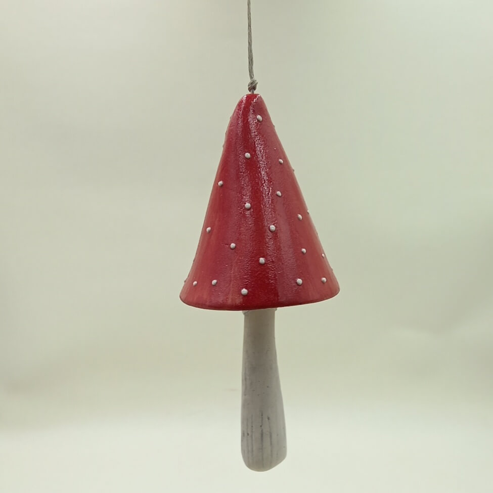 Nóżka grzybka jest równocześnie sercem dzwonu. Powieś Muchomorka w przewiewnym miejscu, będzie delikatnie podzwaniał. Możesz ozdobić nim zarówno wnętrze, jak i powiesić na zewnątrz- wypalona glina ceramiczna jest odporna na wilgoć i temperatury.