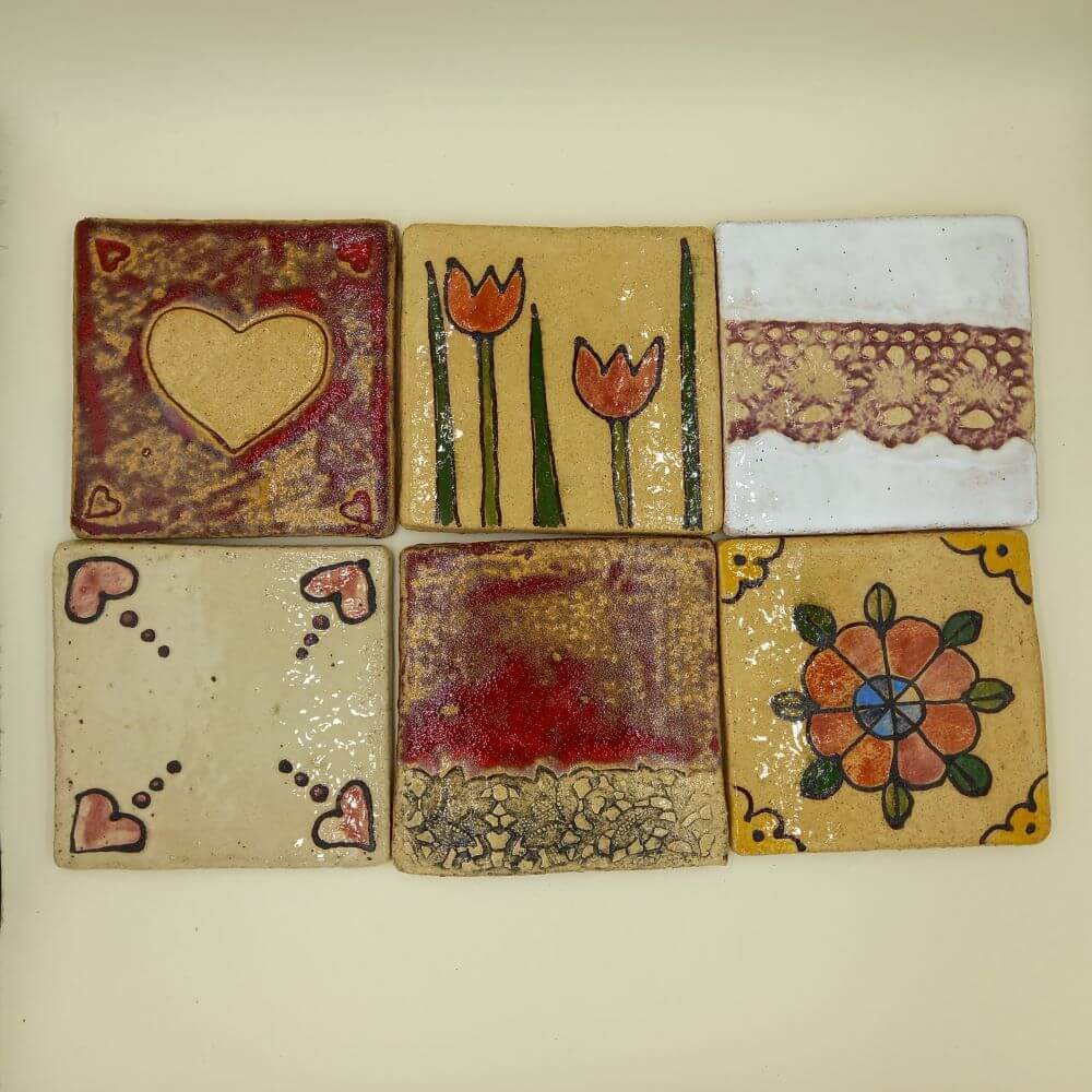 Ręcznie robione płytki ceramiczne, zestaw „Czerwony”