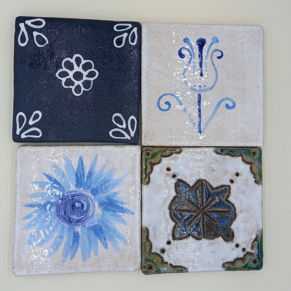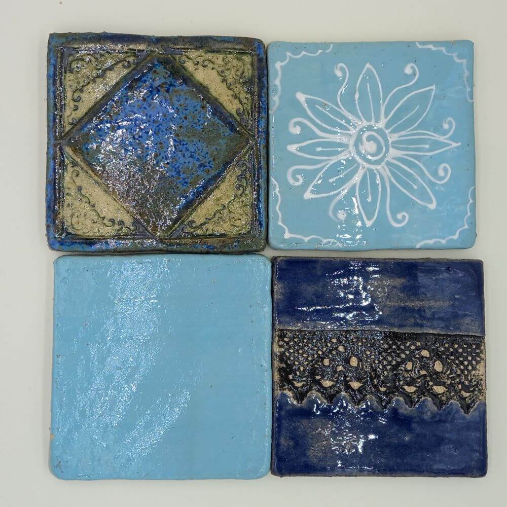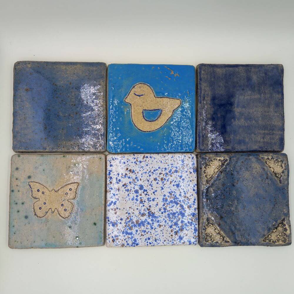 Ręcznie robione płytki ceramiczne, zestaw „Niebieski”