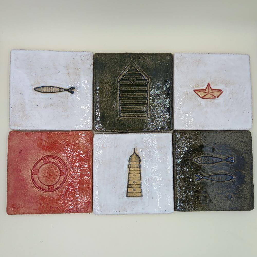 Ręcznie robione płytki ceramiczne, zestaw „Marina”