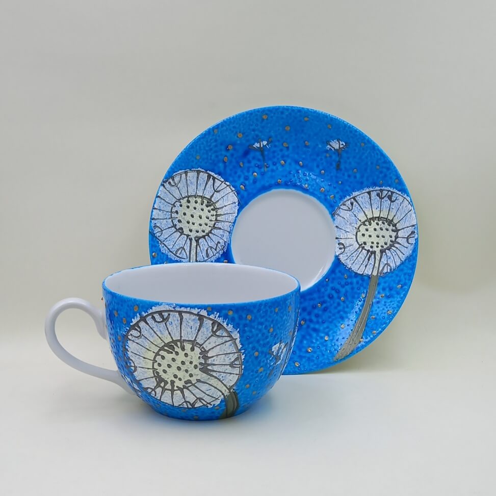 Filiżankę z dmuchawcami wymalowaliśmy ręcznie.