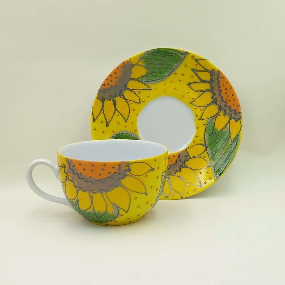 Filiżankę ze słonecznikami wymalowaliśmy ręcznie.