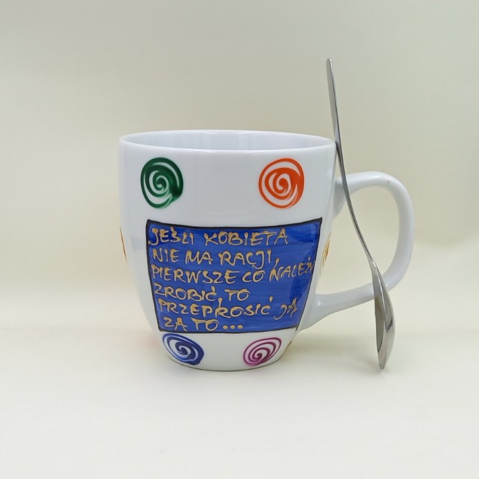 Ręcznie malowany, duży kubek 450 ml „Jeśli Kobieta nie ma…”