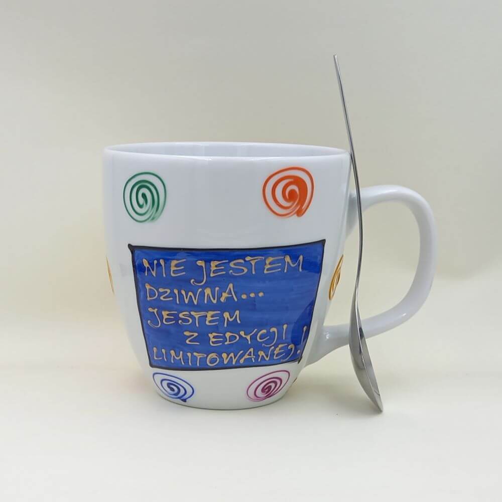 Ręcznie malowany, duży kubek 450 ml „Nie jestem dziwna…”