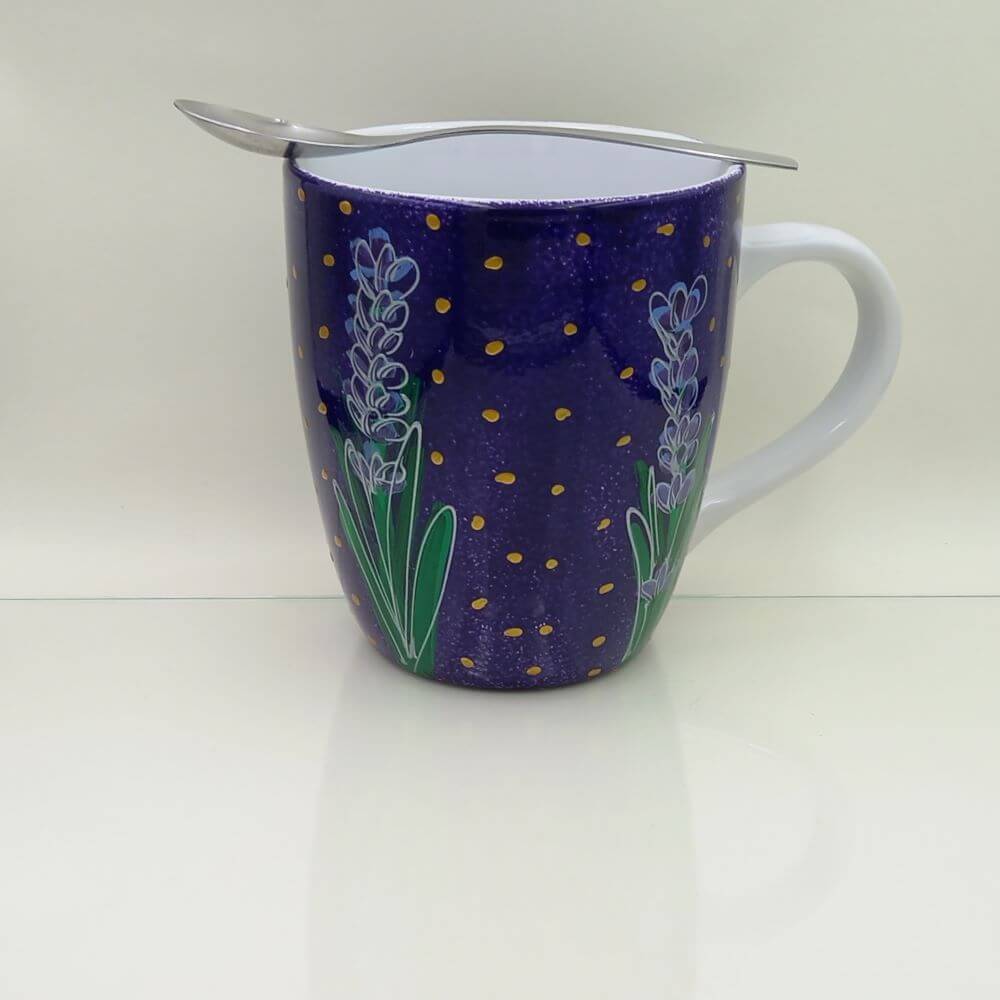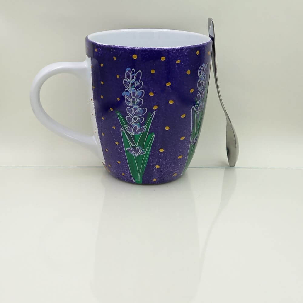 Naprawdę duuuży kubek z lawendą pomalowaliśmy ręcznie.