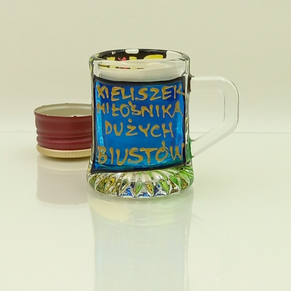 Ręcznie malowany kieliszek-kufelek „…Miłośnika Dużych Biustów”