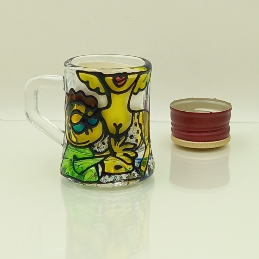 Ten mały kieliszek z uszkiem pomalowaliśmy farbami do szkła i ceramiki.