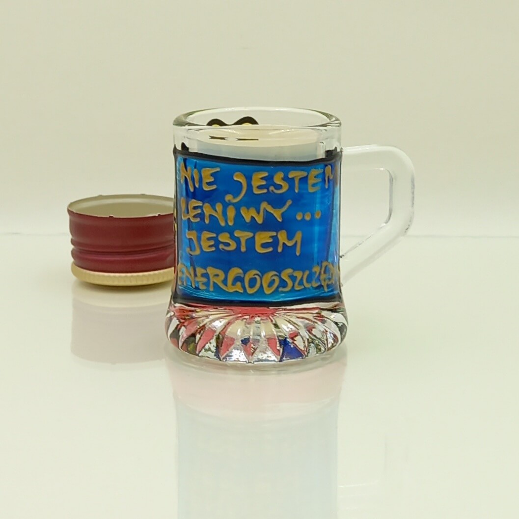 Ręcznie malowany kieliszek-kufelek „Nie jestem Leniwy…”