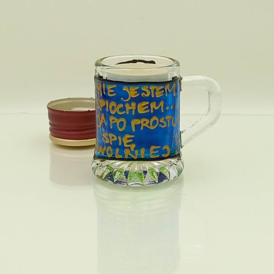 Ręcznie malowany kieliszek-kufelek „Nie jestem Śpiochem…”