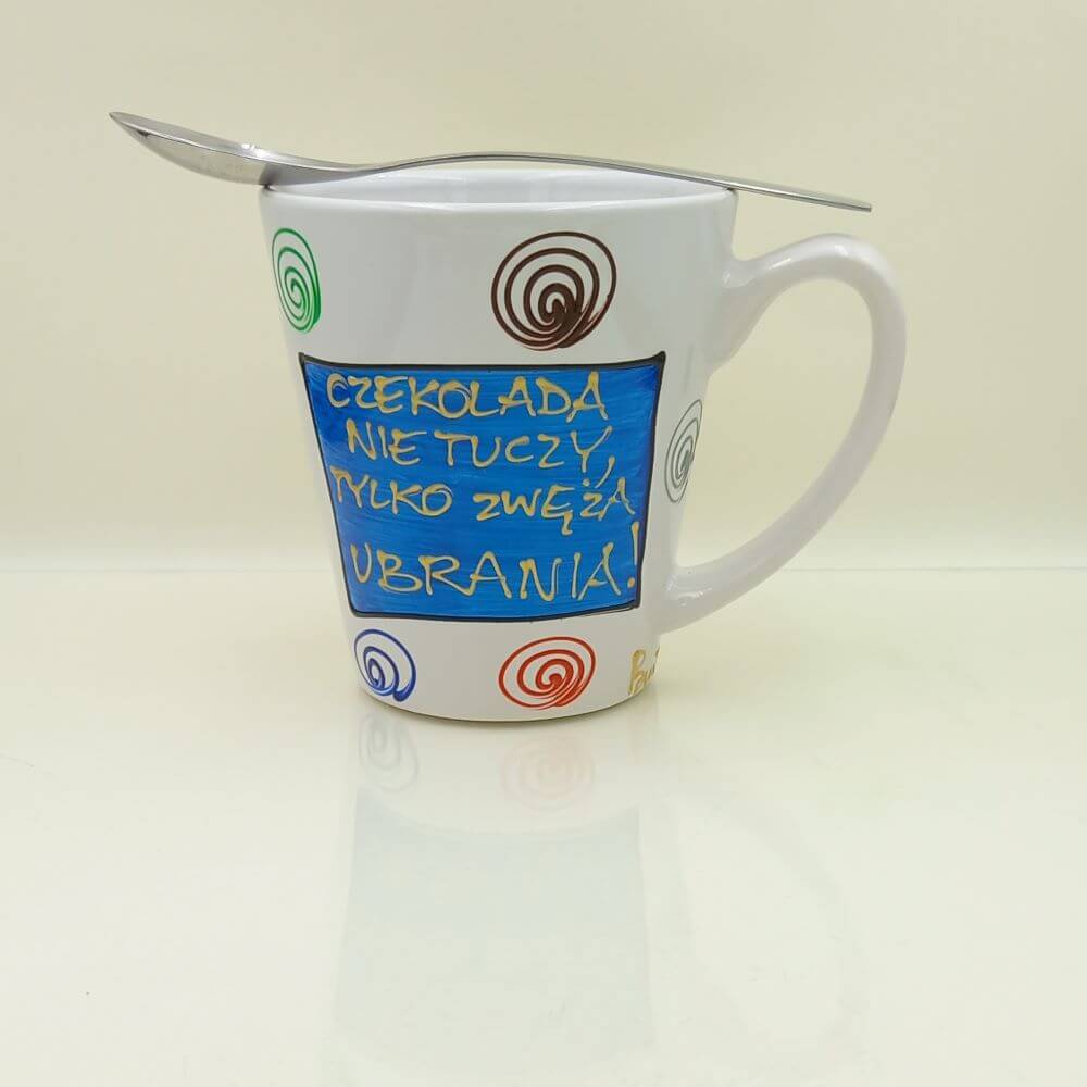 Ręcznie malowany kubek 330 ml „Czekolada nie tuczy…”