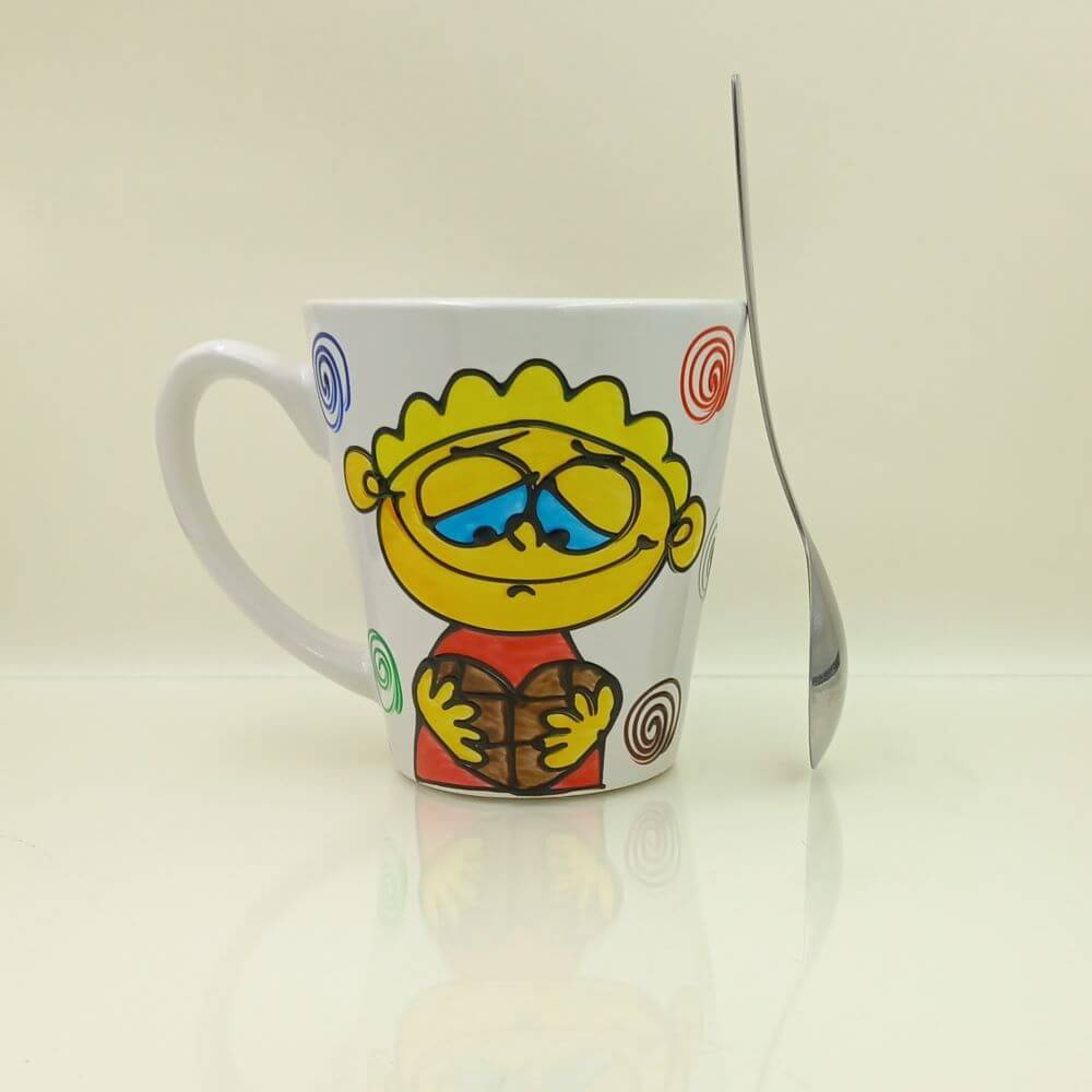 Kubek z tym zabawnym napisem pomalowaliśmy ręcznie farbami do szkła i ceramiki.