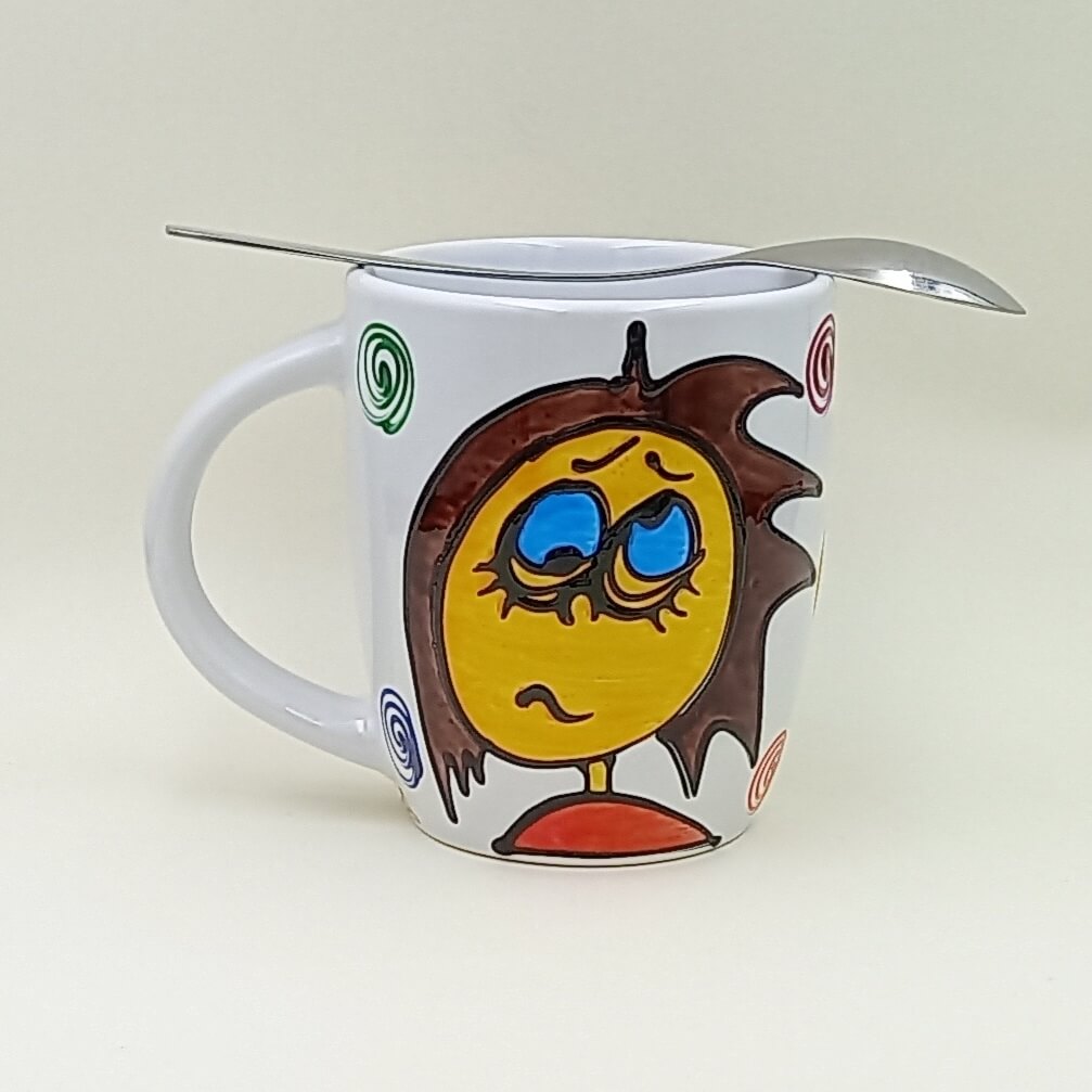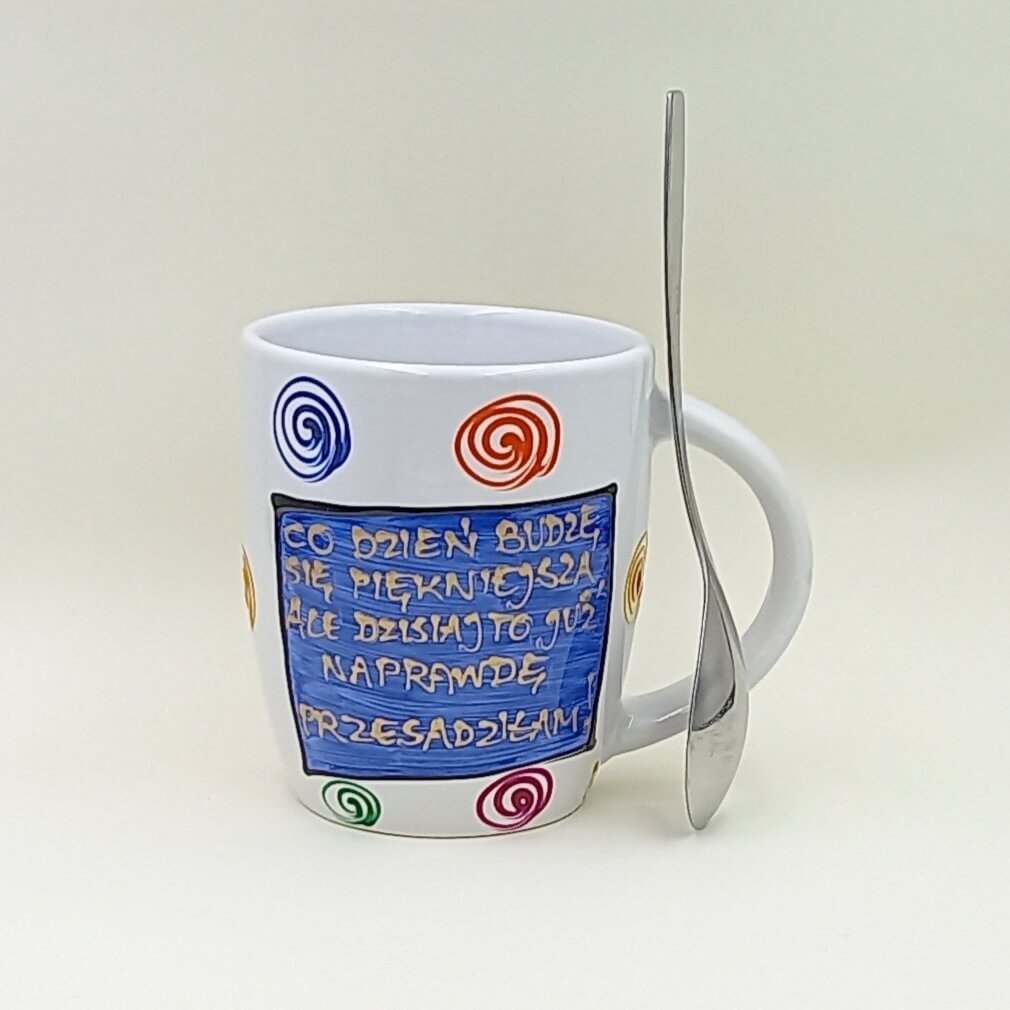 Technika wykonania: Kubek ceramiczny ręcznie malowany farbami do szkła i ceramiki.
