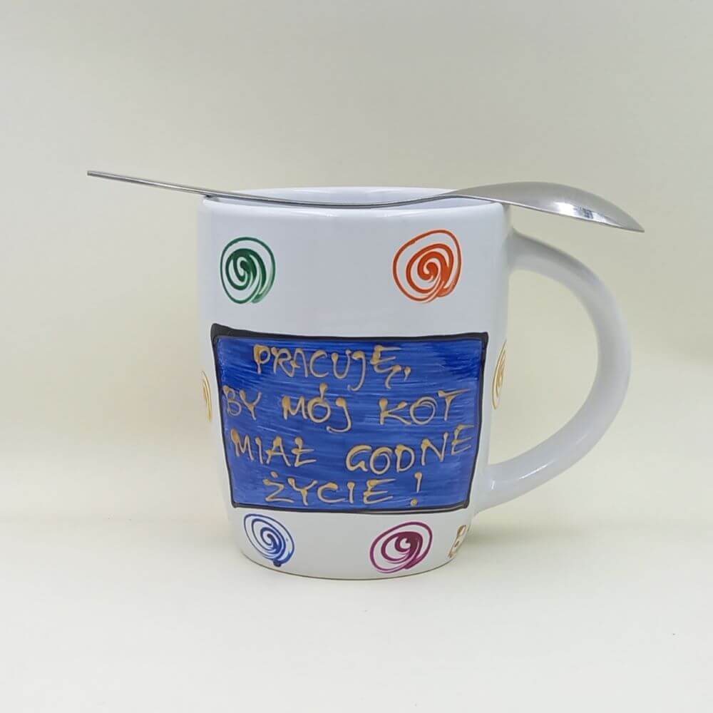 Ręcznie malowany kubek 300 ml „Pracuję, by mój Kot…”