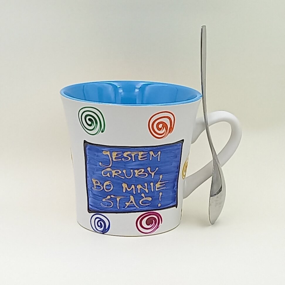Ręcznie malowany kubek 400 ml „Jestem Gruby, bo mnie stać!”