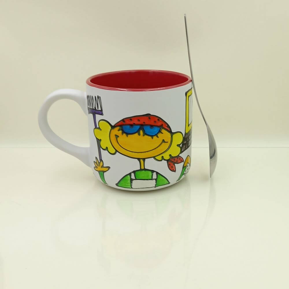 Technika wykonania: Kubek ceramiczny ręcznie malowany farbami do szkła i ceramiki.
