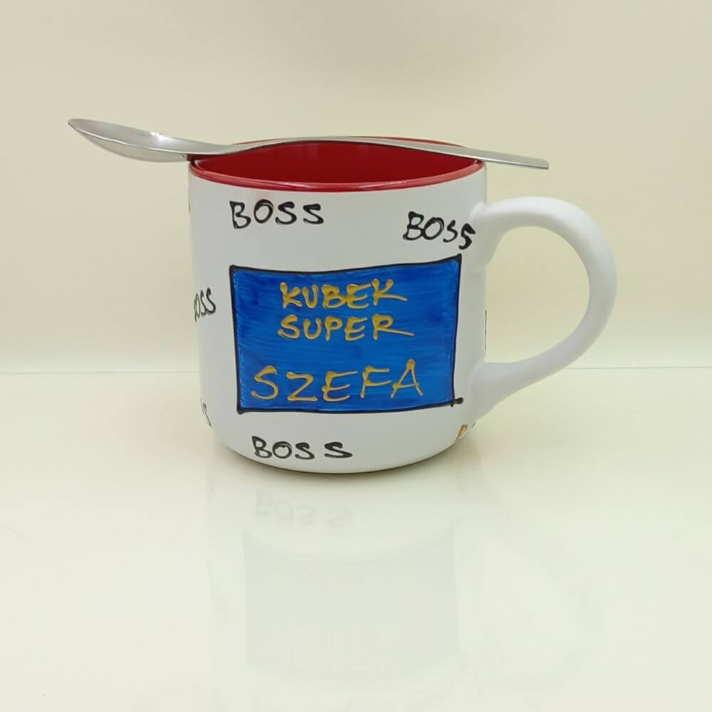 Ręcznie malowany kubek 400 ml „Kubek Super Szefa”