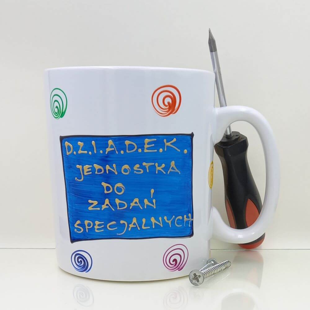 Ręcznie malowany, wielki kubek 1 litr „D.Z.I.A.D.E.K…”