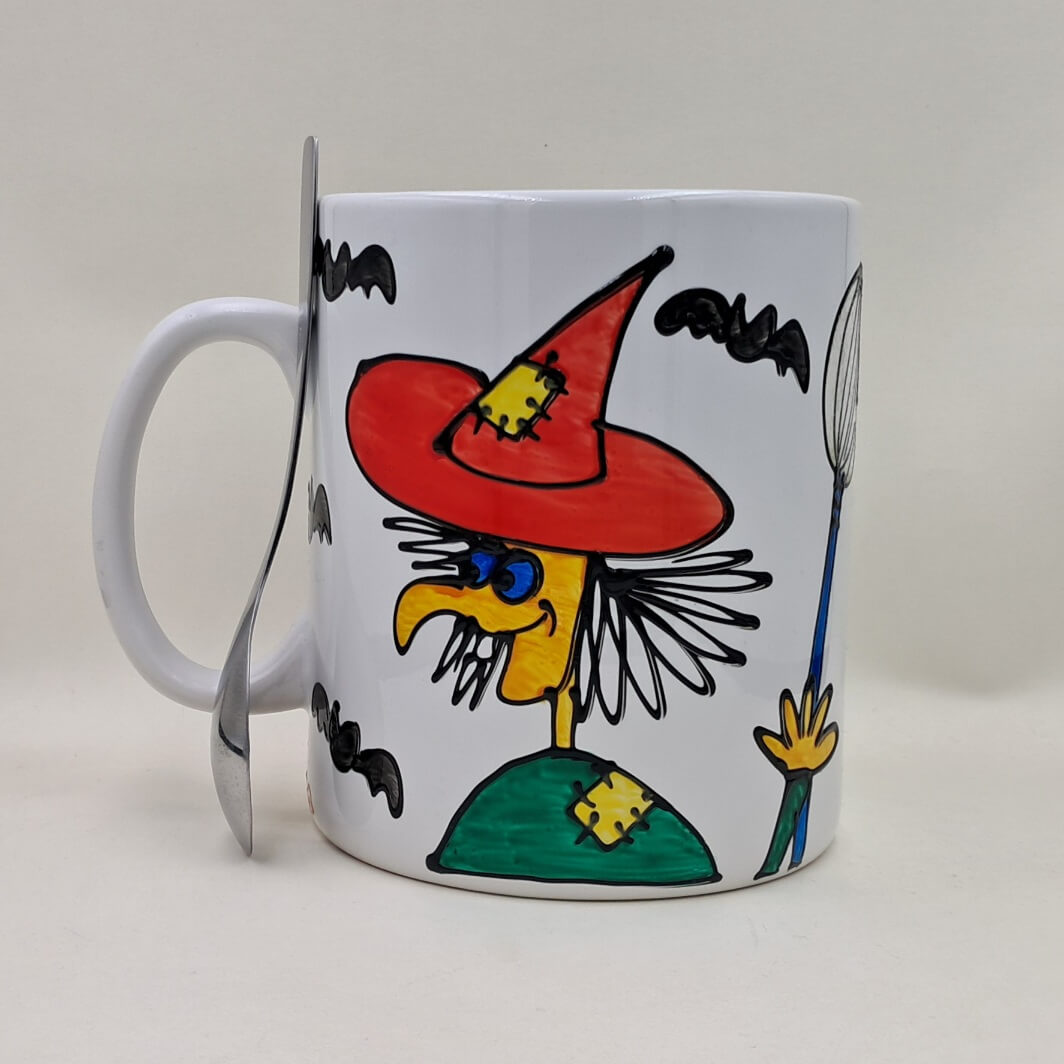 Technika wykonania: Kubek ceramiczny ręcznie malowany farbami do szkła i ceramiki.
