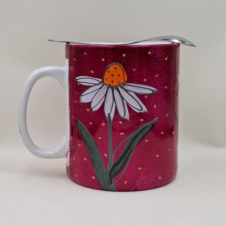 Technika wykonania: Kubek ceramiczny, ręcznie malowany farbami do szkła i ceramiki.