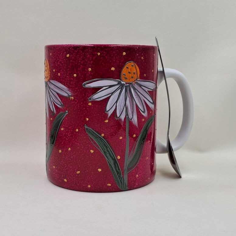 Ręcznie malowany, wielki kubek 900 ml „Jeżówki”