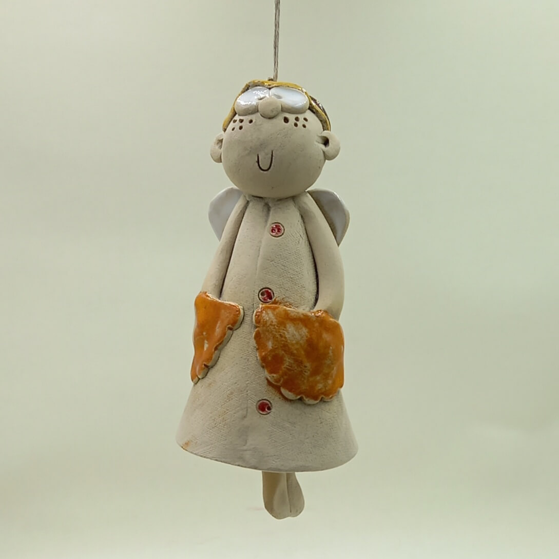 Ręcznie robiony dzwonek ceramiczny „Aniołek Chłopiec I”