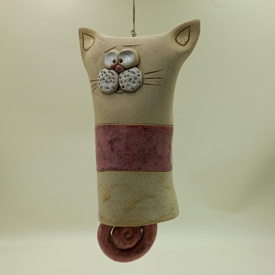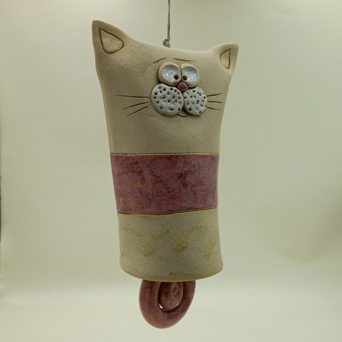 Ręcznie robiony dzwonek ceramiczny „Kot Różowy”