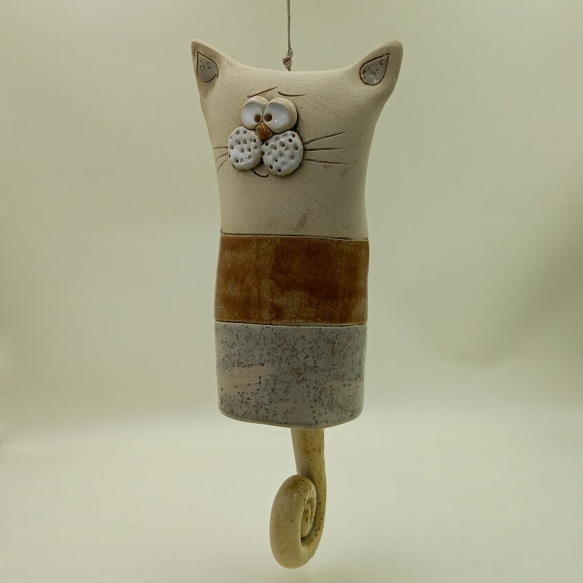Ręcznie robiony dzwonek ceramiczny „Kot Brązowy”