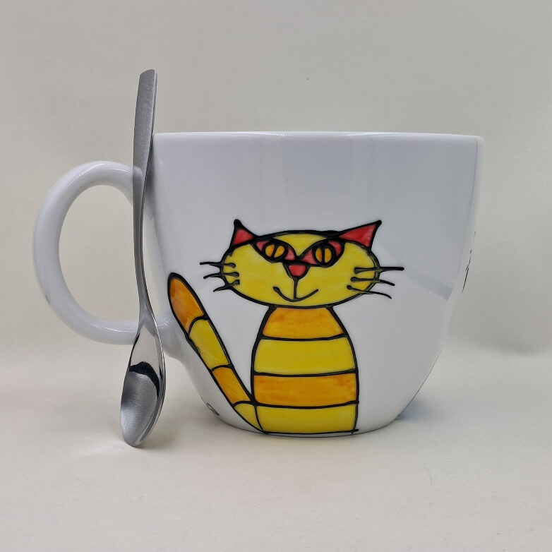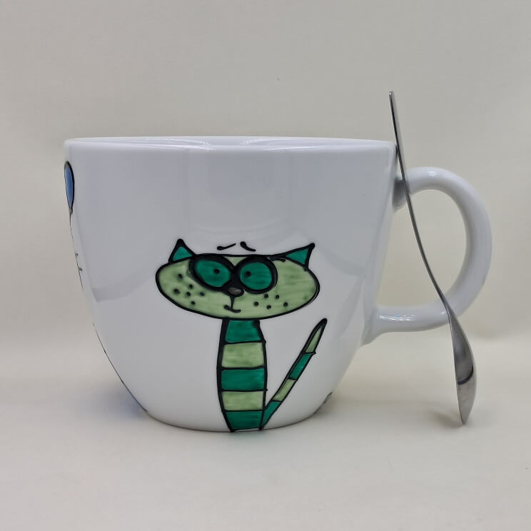 Wielki, ręcznie malowany kubek 1 litr „Koty”