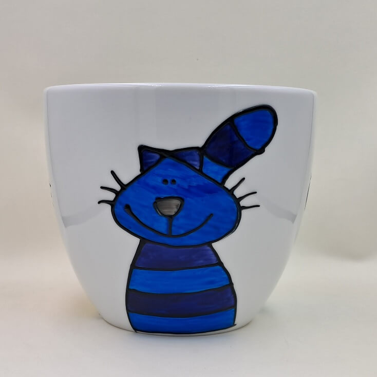 Ten wyjątkowo wielki, ceramiczny kubek wymalowaliśmy ręcznie w naszej pracowni „Panika-Towary Ładne”.