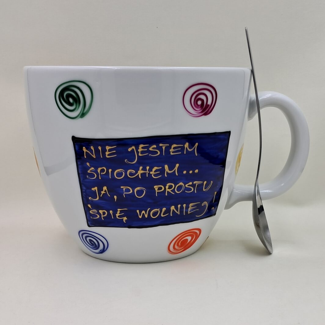 Wielki, ręcznie malowany kubek 1 litr „Nie jestem śpiochem…”
