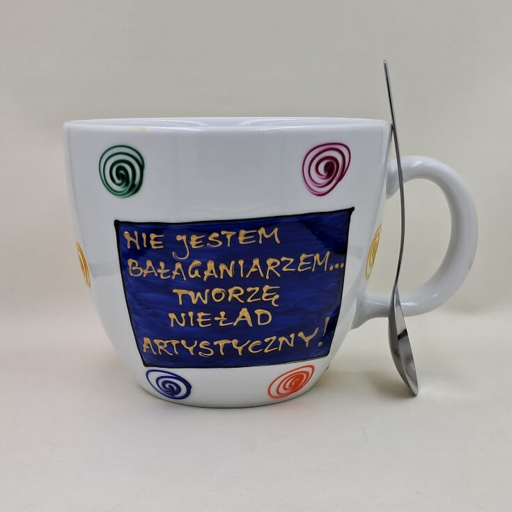 Wielki, ręcznie malowany kubek 1 litr”Nie jestem bałaganiarzem..”